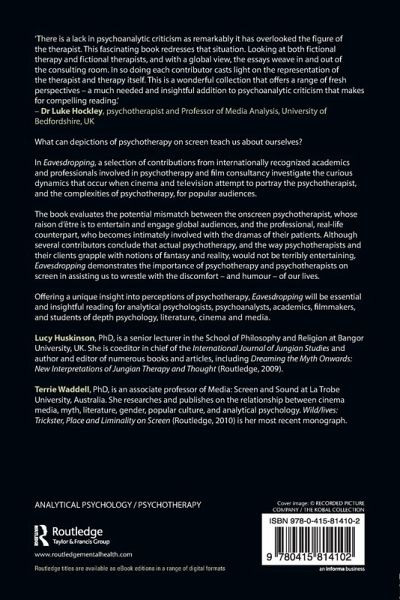 What can depictions of psychotherapy on screen teach us about ourselves? ¿In¿Eavesdropping, a selection of contributions from internationally-based film consultants, practicing psychotherapists and interdisciplinary scholars investigate the curious dynamics that occur when films and television programmes attempt to portray the psychotherapist, and the complexities of psychotherapy, for popular audiences. ¿The book evaluates the potential mismatch between the onscreen psychotherapist, whose raison d'être is to entertain and engage global audiences, and the professional, real-life counterpart, who becomes intimately involved with the dramas of their patients.¿ While several contributors conclude that actual psychotherapy, and the way psychotherapists and their clients grapple with notions of fantasy and reality, would make a rather poor show,¿Eavesdropping¿demonstrates the importance of psychotherapy and psychotherapists on-screen in assisting us to wrestle with the discomfort - and humour - of our lives. ¿Offering a unique insight into perceptions of psychotherapy,¿Eavesdropping¿will be essential and insightful reading for analytical psychologists, psychoanalysts, academics and students of depth psychology, film and television studies, media studies and literature, as well as filmmakers.
