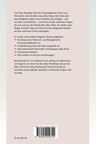 Das Werk ist daher jedem eBay-Mitglied - egal ob Gelegenheitskäufer, Powerseller, Verkaufsagent oder mit den auf dem Online-Marktplatz eBay befassten Juristen - uneingeschränkt zu empfehlen."