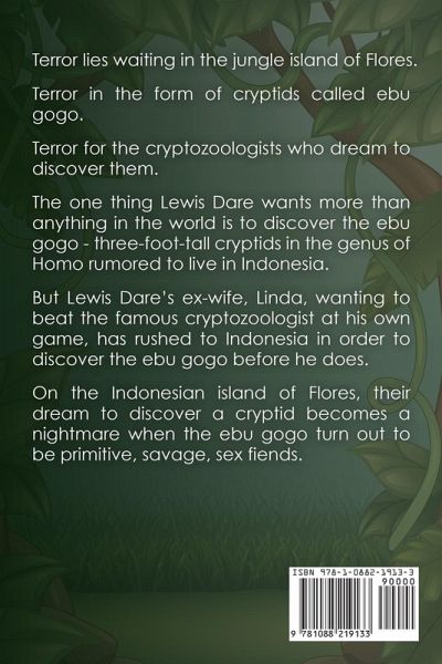 Terror lies waiting in the jungle island of Flores. Terror in the form of cryptids called ebu gogo. Terror for the cryptozoologists who dream to discover them. The one thing Lewis Dare wants more than anything in the world is to discover the ebu gogo - three-foot-tall cryptids in the genus of Homo rumored to live in Indonesia. But Lewis Dare's ex-wife, Linda, wanting to beat the famous cryptozoologist at his own game, has rushed to Indonesia in order to discover the ebu gogo before he does. On the Indonesian island of Flores, their dream to discover a cryptid becomes a nightmare when the ebu gogo turn out to be primitive, savage, sex fiends.…mehr