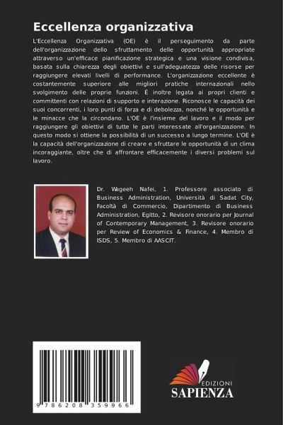 L'Eccellenza Organizzativa (OE) è il perseguimento da parte dell'organizzazione dello sfruttamento delle opportunità appropriate attraverso un'efficace pianificazione strategica e una visione condivisa, basata sulla chiarezza degli obiettivi e sull'adeguatezza delle risorse per raggiungere elevati livelli di performance. L'organizzazione eccellente è costantemente superiore alle migliori pratiche internazionali nello svolgimento delle proprie funzioni. È inoltre legata ai propri clienti e committenti con relazioni di supporto e interazione. Riconosce le capacità dei suoi concorrenti, i loro punti di forza e di debolezza, nonché le opportunità e le minacce che la circondano. L'OE è l'insieme del lavoro e il modo per raggiungere gli obiettivi di tutte le parti interessate all'organizzazione. In questo modo si ottiene la possibilità di un successo a lungo termine. L'OE è la capacità dell'organizzazione di creare e sfruttare le opportunità di un clima incoraggiante, oltre che di affrontare efficacemente i diversi problemi sul lavoro.