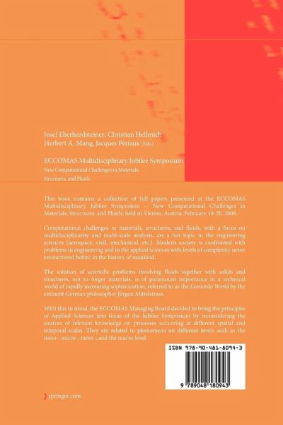 This book contains 23 papers presented at the ECCOMAS Multidisciplinary Jubilee Symposium - New Computational Challenges in Materials, Structures, and Fluids (EMJS08), in Vienna, February 18-20, 2008. The main intention of EMJS08 was to react adequately to the increasing need for interdisciplinary research activities allowing ef?cient solution of complex problems in engineering and in the applied sciences. The 15th anniversary of ECCOMAS (European Community on Computational Methods in Applied Sciences) provided a suitable frame for taking the afo- mentioned situation into account by inviting distinguished colleagues from d- ferent areas of engineering and the applied sciences, encouraging them to choose multidisciplinary topics for their lectures. The main themes of EMJS08 have a long tradition in engineering and in the applied sciences: materials, structures, and ?uids. The solution of scienti?c pr- lems involving ?uids together with solids and structures, not to forget the materials the structures are made of, is of paramount importance in a technical world of rapidly increasing sophistication, referred to as the Leonardo World by the eminent German philosopher Ju¨rgen Mittelstraß. More recently, the main themes of EMJS08 have gained considerable mom- tum, owing to signi?cant progress in nanotechnology. It enables resolution of a multitude of materials into their micro- and nanostructures. Covering aspects such as - Physical and chemical characterization - Multiscale modeling concepts, continuum micromechanics, and computational homogenization, as well as - Applications in various engineering ?elds the individual contributions to this book ?ow along different tracks of ?uids, materials, and structures.