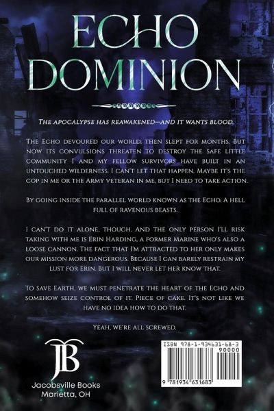 The apocalypse has reawakened-and it wants blood. The Echo devoured our world, then slept for months. But now its convulsions threaten to destroy the safe little community I and my fellow survivors have built in an untouched wilderness. I can't let that happen. Maybe it's the cop in me or the Army veteran in me, but I need to take action. By going inside the parallel world known as the Echo. A hell full of ravenous beasts. I can't do it alone, though. And the only person I'll risk taking with me is Erin Harding, a former Marine who's also a loose cannon. The fact that I'm attracted to her only makes our mission more dangerous. Because I can barely restrain my lust for Erin. But I will never let her know that. To save Earth, we must penetrate the heart of the Echo and somehow seize control of it. Piece of cake. It's not like we have no idea how to do that. Yeah, we're all screwed. Echo Dominion is the second book in the Echo Power Trilogy of dark, steamy paranormal romances.