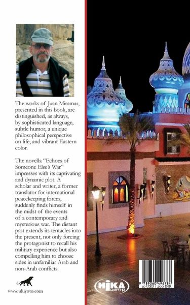 The works of Juan Miramar, presented in this book, are distinguished, as always, by sophisticated language, subtle humor, a unique philosophical perspective on life, and vibrant Eastern color. The novella "Echoes of Someone Else's War" impresses with its captivating and dynamic plot. A scholar and writer, a former translator for international peacekeeping forces, suddenly finds himself in the midst of the events of a contemporary and mysterious war. The distant past extends its tentacles into the present, not only forcing the protagonist to recall his military experience but also compelling him to choose sides in unfamiliar Arab and non-Arab conflicts.