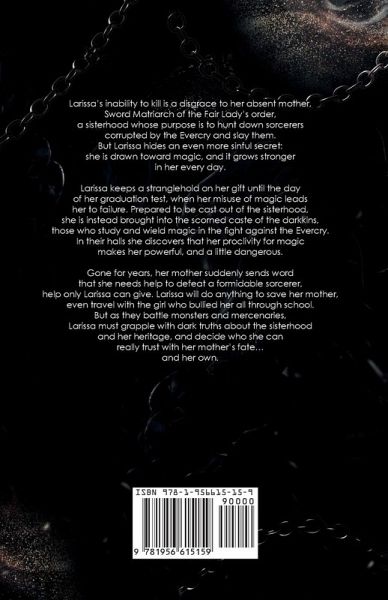 The cost of magic has never been clearer. Larissa's inability to kill is a disgrace to her absent mother, Sword Matriarch of the Fair Lady's order, a sisterhood whose purpose is to hunt down sorcerers corrupted by the Evercry and slay them. But Larissa hides an even more sinful secret: she is drawn toward magic, and it grows stronger in her every day. Larissa keeps a stranglehold on her gift until the day of her graduation test, when her misuse of magic leads her to failure. Prepared to be cast out of the sisterhood, she is instead brought into the scorned caste of the darkkins, those who study and wield magic in the fight against the Evercry. In their halls she discovers that her proclivity for magic makes her powerful, and a little dangerous. Gone for years, her mother suddenly sends word that she needs help to defeat a formidable sorcerer, help only Larissa can give. Larissa will do anything to save her mother, even travel with the girl who bullied her all through school. But as they battle monsters and mercenaries, Larissa must grapple with dark truths about the sisterhood and her heritage, and decide who she can really trust with her mother's fate...and her own.