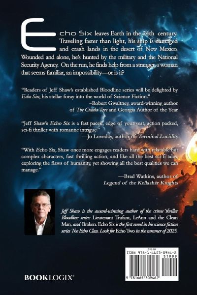 Echo Six leaves Earth in the 24th century. Traveling faster than light, his ship is damaged and crash lands in the desert of New Mexico. Wounded and alone, he's hunted by the military and the National Security Agency. On the run, he finds help from a stranger, a woman that seems familiar, an impossibility -or is it?