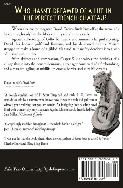 Who hasn't dreamed of a life in the perfect French chateau? When electronics magnate David Crown finds himself at the scene of a hate crime, his idyll in the Midi countryside abruptly ends. Against a backdrop of Gallic bonhomie and summer's languid ripening, David, his bookish girlfriend Rowena, and his demented mother Miriam struggle to make a home of a gilded Mansard as it swiftly devolves into a web of mishap and murder. With deftness and compassion, Casper Silk entwines the destinies of a village thrust into the new millennium, a teenager convicted of a firebombing, and a man struggling, at midlife, to cross a border and seize his dreams. "In this well-crafted literary novel, the author captures the myriad nuances of a mid-life crisis and brings to life an idyllic village in the French Midi only to haunt it with dark forces. The perfect chateau proves no refuge for protagonist David Crown. Amid a hail of firebombs and truffles, his world comes tumbling down." David Liss