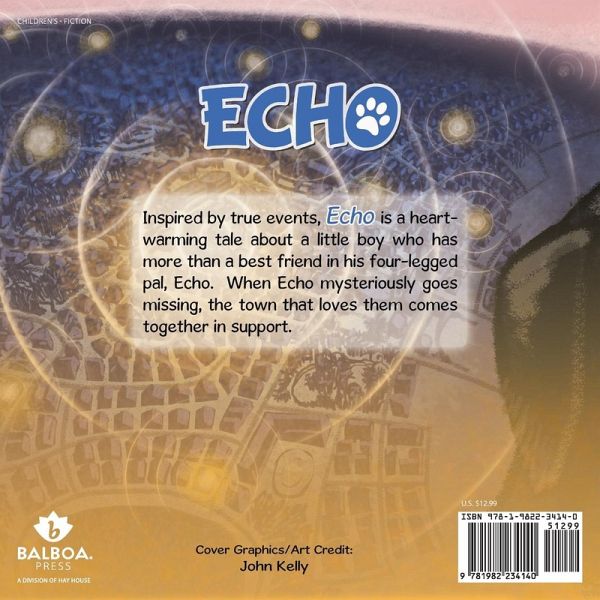 Echo is a heartwarming tale inspired by true events. In this feel-good adventure, a wish born in the heart of a non-verbal boy with autism to find his missing dog spreads to greater and greater circles of community, leaving the reader spellbound by the extraordinary story of a dog, a boy, and the town that loves them both. Echo is both uplifting and suspenseful,with a message of inclusion and community support that is wonderful expression about autism awareness, service dogs, and the simple yet powerful message of love.