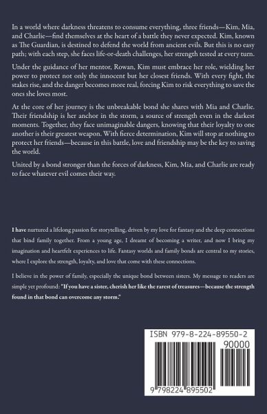 In a world where darkness threatens to consume everything, three friends-Kim, Mia, and Charlie-find themselves at the heart of a battle they never expected. Kim, known as The Guardian, is destined to defend the world from ancient evils. But this is no easy path; with each step, she faces life-or-death challenges, her strength tested at every turn. Under the guidance of her mentor, Rowan, Kim must embrace her role, wielding her power to protect not only the innocent but her closest friends. With every fight, the stakes rise, and the danger becomes more real, forcing Kim to risk everything to save the ones she loves most. At the core of her journey is the unbreakable bond she shares with Mia and Charlie. Their friendship is her anchor in the storm, a source of strength even in the darkest moments. Together, they face unimaginable dangers, knowing that their loyalty to one another is their greatest weapon. With fierce determination, Kim will stop at nothing to protect her friends-because in this battle, love and friendship may be the key to saving the world. United by a bond stronger than the forces of darkness, Kim, Mia, and Charlie are ready to face whatever evil comes their way.