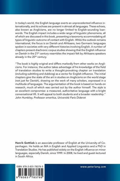 In today's world, the English language exerts an unprecedented influence internationally, and its echoes are present in almost all languages. These echoes, also known as Anglicisms, are no longer limited to English-sounding loanwords. The English impact includes a wide range of linguistic phenomena, all of which are discussed in this book, presenting a taxonomy accommodating all types of linguistic outcome of contact with English. While the outlook remains international, the focus is on Danish and Afrikaans, two Germanic languages spoken in societies with very different histories involving English. A number of chapters present diachronic corpus studies showing that the English influence on Danish in the 21st century resembles the impact felt by Afrikaans speakers already in the 20th century.