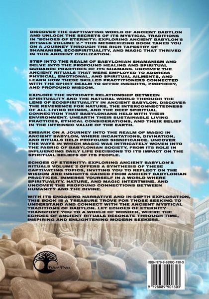 Discover the captivating world of ancient Babylon and unlock the secrets of its mystical traditions in "Echoes of Eternity: Exploring Ancient Babylon's Rituals Volume 2." This mesmerizing book takes you on a journey through the rich tapestry of shamanism, ecospirituality, and magic that thrived in this ancient civilization. Step into the realm of Babylonian shamanism and delve into the profound healing and spiritual guidance practices of its shamans. Uncover the ancient rituals that were employed to address physical, emotional, and spiritual ailments, and learn how these skilled practitioners connected with the spirit realm to offer insights, prophecy, and profound wisdom. Explore the intricate relationship between spirituality and the natural world through the lens of ecospirituality in ancient Babylon. Discover the reverence for nature, the interconnectedness of all living beings, and the deep spiritual connection that Babylonians held with their environment. Unearth their sustainable living practices, ethical considerations, and their belief in the intrinsic value of the Earth. Embark on a journey into the realm of magic in ancient Babylon, where incantations, divination, and rituals held profound significance. Uncover the ways in which magic was intricately woven into the fabric of Babylonian society, from its role in influencing daily life decisions to its impact on the spiritual beliefs of its people. Echoes of Eternity: Exploring Ancient Babylon's Rituals Volume 2 offers a synthesis of these captivating topics, inviting you to reflect on the wisdom and insights gained from ancient Babylonian practices. Immerse yourself in a world where spirituality, nature, and magic intertwine, and uncover the profound connections between humanity and the divine. With its engaging narrative and in-depth exploration, this book is a treasure trove for those seeking to understand and connect with the ancient mystical traditions of Babylon. Let Echoes of Eternity transport you to a world of wonder, where the echoes of ancient rituals resonate through time, inspiring and enlightening modern seekers.