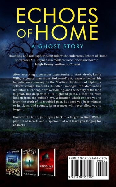 "Dripping with atmosphere and a mounting sense of dread, Echoes of Home delivers all the chills of a classic ghost story." Sammy Scott, Author of At Home with the Horrors & BETA ¿¿¿"Haunting and atmospheric, but told with tenderness, Echoes of Home showcases M L Rayner as a modern voice for classic horror." Leigh Kenny, Author of Cursed ¿¿After accepting a generous opportunity to start afresh, Leslie Wills, a young man from Stoke-on-Trent, eagerly begins his long-distance journey to the Scottish Highlands of Elphin, a settled village that sits huddled amongst the dominating mountains. Its people are welcoming, and the beauty of the land is great. But deep within its Highland paths, a location rests hidden from the public's eye. A location which entices you to learn the truth of its troubled past. But once you bear witness to its sights and sounds, its presences will never allow you to forget. Uncover the truth, journeying back to a forgotten time. With a plot full of secrets and suspicion that will leave you longing for answers.