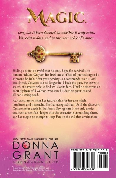 Hiding a secret so awful that his only hope for survival is to remain hidden, Grayson has lived most of his life pretending to be someone he isn't. After years serving as a commander to his lord and friend, Grayson can no longer hold back the past. He leaves in search of answers only to find evil awaits him. Until he discovers an achingly beautiful woman who stirs his deepest passions and all-consuming need. Adrianna knows what her future holds for her as a witch - loneliness and heartache. She has accepted that. Until she discovers Grayson near death in the forest. Saving him is her only choice, and even as she falls deeper into the attraction surrounding them, will her magic be enough to stop Fate or the evil that awaits them?