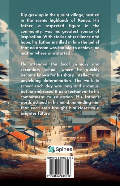 Kiprono Mutai grew up in the quaint village of Kiptogoch, nestled in the scenic highlands of Kenya. Life in the village was simple yet filled with its unique set of challenges. From an early age, Kiprono learned the values of hard work and perseverance. His father, a respected figure in the community, was his greatest source of inspiration. With stories of resilience and hope, his father instilled in Kiprono the belief that no dream was too big to achieve, no matter where one started. Kiprono attended the local primary school, where he quickly became known for his sharp intellect and unyielding determination. Despite the limited resources, he excelled in his studies, driven by a desire to honor his father's legacy. The walk to school each day was long and arduous, often through rough terrain, but Kiprono embraced it as a testament to his commitment to education. His father's words echoed in his mind, reminding him that each step brought him closer to a brighter future. Tragedy struck when Kiprono's father passed away, but instead of succumbing to grief, Kiprono found strength in his father's memory. Kiprono's journey is a testament to the power of inspiration and the impact of a supportive community. He is determined to achieve bigger dreams and become an inspiration to others who are on the same journey. His story resonates with many in Kiptogoch and beyond, proving that where one starts does not dictate where one can go. Through education, perseverance, and the unwavering belief in one's potential, Kiprono is destined to transform his dreams into reality and inspire others to do the same.