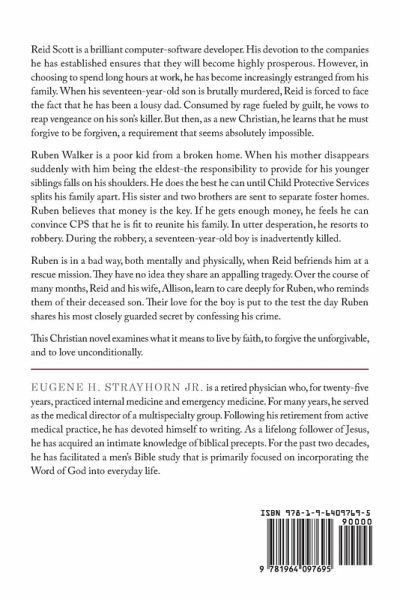 Reid Scott is a brilliant computer-software developer. His devotion to the companies he has established ensures that they will become highly prosperous. However, in choosing to spend long hours at work, he has become increasingly estranged from his family. When his seventeen-year-old son is brutally murdered, Reid is forced to face the fact that he has been a lousy dad. Consumed by rage fueled by guilt, he vows to reap vengeance on his son's killer. But then, as a new Christian, he learns that he must forgive to be forgiven, a requirement that seems absolutely impossible. Ruben Walker is a poor kid from a broken home. When his mother disappears suddenly with him being the eldest-the responsibility to provide for his younger siblings falls on his shoulders. He does the best he can until Child Protective Services splits his family apart. His sister and two brothers are sent to separate foster homes. Ruben believes that money is the key. If he accumulates enough wealth, he feels he can convince CPS that he is fit to reunite his family. In utter desperation, he resorts to robbery. During the robbery, a seventeen-year-old boy is inadvertently killed. A sequence of providential events brings Reid and Ruben together. They have no idea they share an appalling tragedy. Over the course of many months, Reid and his wife, Allison, learn to care deeply for Ruben, who reminds them of their deceased son. Their love for the boy is put to the test the day Ruben shares his most closely guarded secret by confessing his crime. This Christian novel examines what it means to live by faith, to forgive the unforgivable, and to love unconditionally.