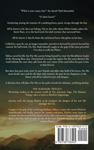 "What is your name, boy?" the dread Chief demanded. "I-I don't know!" Awakening among the remains of a smoking forest, panic sweeps through the boy. All he knows is he does not belong. Not to the tribe whose lifeless bodies adorn the forest floor, or to the hard-eyed, fur-clad warriors that surround him. All he knows is that he hates the red-haired beast who gloats in his face. Called by a past he can no longer remember and driven forward by powers beyond his control, the half-witch, Du Mu, finds himself caught in the grip of the most powerful Cro clan to walk the Plains. Eldrax saved his life, but Du Mu cannot bring himself to trust the bloodthirsty leader of the Hunting Bear clan. Determined to escape his captor, Du Mu must discover the truth behind the voice that calls from the very centre of his soul before his past is lost to him forever. But does that past truly exist? As new friends and allies take hold of his heart, Du Mu must decide once and for all what truly matters; the past he has forgotten, or the future and all its unknown joys and dangers. A decision that will place Du Mu on the path towards his ultimate, terrifying destiny.