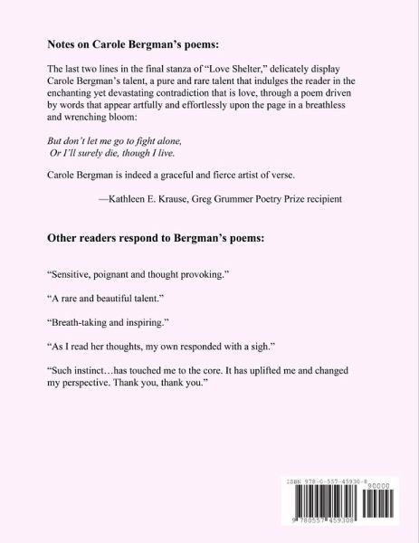 Bergman's debut book of poetry is a luminous achievement in the most delicately powerful sense. The poems and illustrations in this truly intimate and well-crafted book combine a delicate mix of the fiery yet graceful human emotion in a potent style that will be recognized.