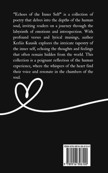 "Echoes of the Inner Self" is a collection of poetry that delves into the depths of the human soul, inviting readers on a journey through the labyrinth of emotions and introspection. With profound verses and lyrical musings, author Kerliis Kuusik explores the intricate tapestry of the inner self, echoing the thoughts and feelings that often remain hidden from the world. This collection is a poignant reflection of the human experience, where the whispers of the heart find their voice and resonate in the chambers of the soul.Copyright © 2024 Magical Fairy Tales Publishing
