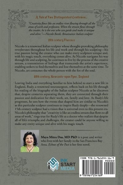A Tale of Two Distinguished Gentlemen... "Creativity flows like an endless river flowing through all the areas of work and profession. When the stream flows through the creator, he is the one who can guide and make it unique and alive."-Niccolo Bardi, Renaissance Italian sculptor 15th century Florence Niccolo is a renowned Italian sculptor whose thought-provoking philosophy reverberates throughout his life and work and through his sculpting-his true passion being the creator who can make every sculpture unique and, with his magic touch, everything comes alive. As Niccolo navigates his way through life and sculpting, he continues to live by the process of the creative stream, a transmission of feelings that transcends the artist's experience, enabling seekers to find themselves and lose themselves at the same time. To Niccolo, art consumes the whole person with the fire of the soul. 20th century, Newcaste-upon Tyne, England Leaving India and everything familiar to him behind to start a new life in England, Rudy, a renowned neurosurgeon, reflects back on his life through his reading of the biography of the Italian sculptor Niccolo as he discovers that, despite centuries separating them, they are connected through their passion and dedication for their work, art, family and love. As Rudy's life progresses, he sees how the events that shaped him are similar to Niccolo's as this particular sculptor continues to inspire Rudy deeply-the renowned 15th century sculptor had a vision that is universal even to this present era. Niccolo's philosophy that "creativity is like an endless stream that flows to all areas of work," rings true for Rudy's life as a doctor who realizes that despite all of life's triumphs and challenges, the creator could be anyone willing to make any entity unique and alive with his magic touch.