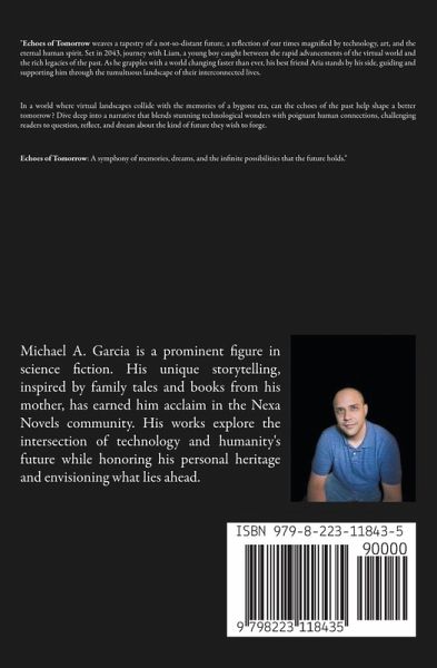 "Echoes of Tomorrow weaves a tapestry of a not-so-distant future, a reflection of our times magnified by technology, art, and the eternal human spirit. Set in 2043, journey with Liam, a young boy caught between the rapid advancements of the virtual world and the rich legacies of the past. As he grapples with a world changing faster than ever, his best friend Aria stands by his side, guiding and supporting him through the tumultuous landscape of their interconnected lives. In a world where virtual landscapes collide with the memories of a bygone era, can the echoes of the past help shape a better tomorrow? Dive deep into a narrative that blends stunning technological wonders with poignant human connections, challenging readers to question, reflect, and dream about the kind of future they wish to forge. Echoes of Tomorrow: A symphony of memories, dreams, and the infinite possibilities that the future holds."