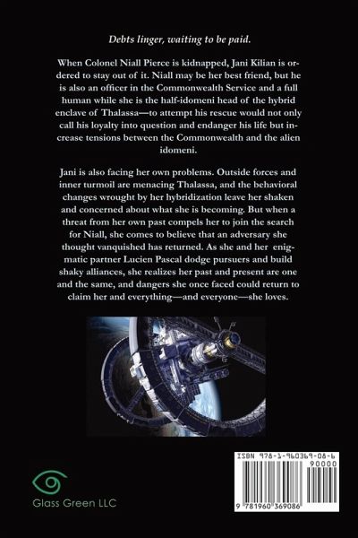 Debts linger, waiting to be paid. When Colonel Niall Pierce is kidnapped, Jani Kilian is ordered to stay out of it. Niall may be her best friend, but he is also an officer in the Commonwealth Service and a full human while she is the half-idomeni head of the hybrid enclave of Thalassa-to attempt his rescue would not only call his loyalty into question and endanger his life but increase tensions between the Commonwealth and the alien idomeni. Jani is also facing her own problems. Outside forces and inner turmoil are menacing Thalassa, and the behavioral changes wrought by her hybridization leave her shaken and concerned about what she is becoming. But when a threat from her own past compels her to join the search for Niall, she comes to believe that an adversary she thought vanquished has returned. As she and her enigmatic partner Lucien Pascal dodge pursuers and build shaky alliances, she realizes her past and present are one and the same, and dangers she once faced could return to claim her and everything-and everyone-she loves.