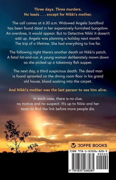 From multi-million-selling Joy Ellis. Her twistiest mystery ever! Three days. Three murders. No leads . . . except for Detective Nikki Galena's mother. The call comes at 6.30 a.m. Widowed Angela Sandford has been found dead in her expensively-furnished bungalow. An overdose, it would appear. But to Detective Nikki it doesn't add up. Angela was planning a holiday next month. The trip of a lifetime. She had everything to live for. The following night there's another death on Nikki's patch. A fatal hit-and-run. A young woman deliberately mown down as she picked up a takeaway fish supper. The next day, a third suspicious death. The dead man is found sprawled on the dining room floor in his grand old house, blood soaking into the carpet. And Nikki's mother was the last person to see him alive. In each case, there is no clue, no motive and no suspect. It's up to Nikki and her team to find the link before more people die. The Setting The Lincolnshire Fens: great open skies brood over marshes, farmland, and nature reserves. It is not easy terrain for the Fenland Constabulary to police: with remote Fen villages, dangerous and often misty lanes, and poor telephone coverage. There are still villages where the oldest residents have never set foot outside their own farmland. A visit to the nearest town is a major event. But it has a strange airy beauty to it, and above it all are the biggest skies you've ever seen. This totally gripping mystery is perfect for fans of L.J. Ross, Angela Marsons, J.D. Kirk, Elly Griffiths and Ann Cleeves. READERS LOVE ECHOES ON THE FENS: ⭐⭐⭐⭐⭐ 'The best Nikki Galena book so far. If I could give it ten stars I would. One of my favourite books of the year.' Diane T. ⭐⭐⭐⭐⭐ 'Oh boy! Oh boy! A cracking story.' Booklover Bev ⭐⭐⭐⭐⭐ 'This book is amazing. In fact the whole series is amazing. I loved the ending.' Mary R. ⭐⭐⭐⭐⭐ 'The best one yet. Full of twists and turns, keeping the reader guessing throughout.' Linda ⭐⭐⭐⭐⭐ 'One of the best crime series around today.' Christina M. ⭐⭐⭐⭐⭐ 'Red herrings at every turn, secrets, lies, obsession, and murder. Not to be missed!' Bonita S. ⭐⭐⭐⭐⭐ 'Absolutely brilliant, so twisty you'll be dizzy.' Amanda P. ⭐⭐⭐⭐⭐ 'A rollercoaster ride. Plenty of suspense.' Jean E. ⭐⭐⭐⭐⭐ 'This Nikki Galena is, in my opinion, the best one so far. A fantastic read.' Simon W. ⭐⭐⭐⭐⭐ 'Filled with twists, turns and red herrings. A fantastic read that I couldn't put down.' Marion B.