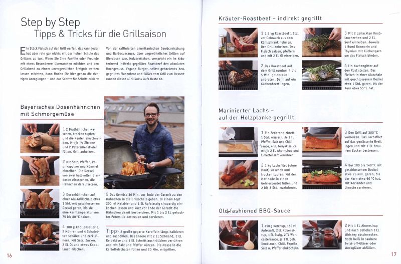 Worauf muss ich beim Grillen achten, wie mache ich eine Old fashioned-BBQ-Sauce oder eine Texas-Grill-Rub? In diesem Buch gibt der Koch und Foodstylist Michael Koch Antwort auf diese Fragen und präsentiert rund um dieses »heiße« Thema mehr als 100 Rezepte, die nicht nur Grillneulinge, sondern auch Barbecue-Profis inspirieren. Ob das beliebte Bierdosenhähnchen, Ribeye Steak mit Chili-Salz-Kruste, Scampi-Spieße mit Melone oder Auberginen-Ziegenkäse-Päckchen – raffinierte Rezepte von Fleisch- und Geflügelgerichten über Fisch und Meeresfrüchte bis hin zu Gemüse, Käse und Co. beweisen, dass Grillen noch viel mehr sein kann als Nackensteak und Bratwurst. Dazu gibt es zahlreiche Ideen für Grillsaucen, Beilagen, Süßes auf dem Grill und die besten Rezepte für eine Grillparty. Das große Plus: Die wichtigsten Basic-Rezepte in Schritt-für-Schritt-Anleitungen und eine reich bebilderte Warenkunde mit den Must-haves der Grillzutaten.
