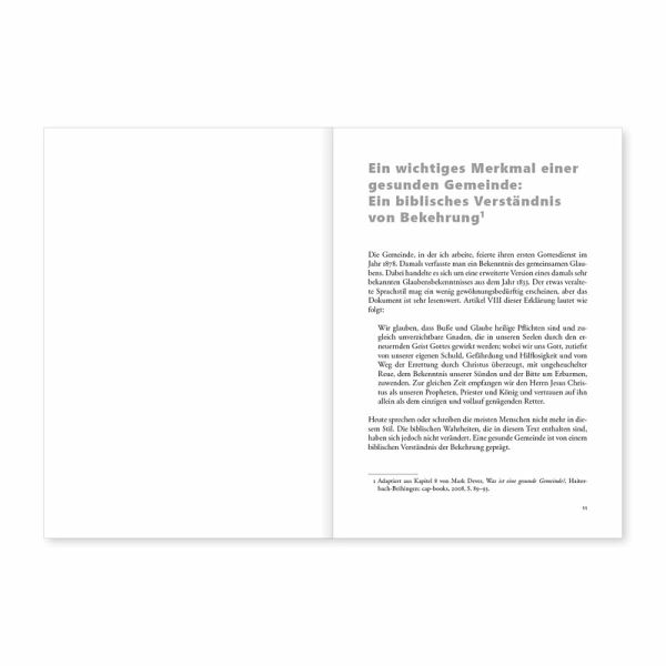 Gott hat die Macht, Menschen zu verändern. Das gibt Hoffnung, denn jeder von uns braucht Veränderung. In diesem Kurs wird untersucht, was Gott bei der Errettung tut: Um welche Art von Veränderung geht es? Was genau geschieht bei der Bekehrung? Woran wird die Errettung sichtbar? Die Teilnehmer gewinnen ein biblisches Verständnis von Bekehrung und ihren Auswirkungen im eigenen Leben und in der Gemeinde.