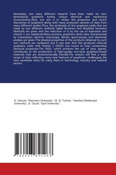 Nowadays, too many different research have been made on two-dimensional graphene having unique electrical and mechanical characteristics.Here, our aim is to review the properties and recent discoveries of graphene along with many produced varieties of data from many different studies.Thus, the synthesize of the graphene oxide that are made by two different methods called Hummers and Modified Hummers Methods are given and the reduction of it by the use of hydrazine and vitamin C are explained.Many previous graphene sheet data characterized by transmission electron microscopy, Raman spectroscopy and elemental analysis are given.The physical properties of the products obtained by such two methods are compared and it was seen that the produced reduced graphene oxide with vitamin C (VIGO) was found to have outstanding electrical properties.The VIGO, which prevents the use of toxic agents, contributes to the production of high-quality non-toxic graphene-based materials that are environmentally friendly.The readers will find a wide range of data reflecting many new features of graphene, challenging the new candidate ideas for using them in technology, industry and medical sectors.