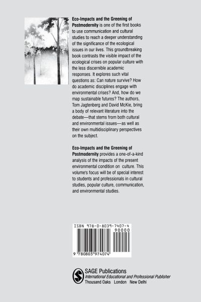 Addressing a growing need to examine environmental issues from a cultural perspective, this innovative book adopts a cultural studies approach to reach a deeper understanding of the significance of ecological issues in our lives. Eco-Impacts and the Greening of Postmodernity explores such vital questions as: Can nature survive? How do academic disciplines engage with environmental crises? And, how do we map sustainable futures? The authors, Tom Jagtenberg and David McKie, bring a body of relevant literature into the debate - that stems from both cultural and environmental issues - as well as their own multidisciplinary perspectives on the subject.