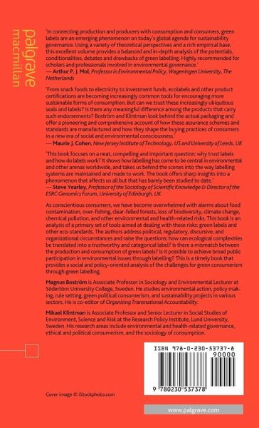 'From snack foods to electricity to investment funds, ecolabels and other product certifications are becoming increasingly common tools for encouraging more sustainable forms of consumption. But can we trust these increasingly ubiquitous seals and labels? Is there any meaningful difference among the products that carry such endorsements? Boström and Klintman look behind the actual packaging and offer a pioneering and comprehensive account of how these assurance schemes and standards are manufactured and how they shape the buying practices of consumers in a new era of social and environmental consciousness.' - Maurie J. Cohen, New Jersey Institute of Technology, USand University of Leeds, UK
