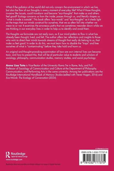 What if the pollution of the world did not only concern the environment in which we live, but also the flow of our thoughts in every moment of everyday life? What if those thoughts, invasive like locusts, could transform and become "eco-thoughts" that make us and others feel good? Ecology concerns us from the inside, passes through us, and literally shapes us: "what is inside is outside". This book offers "eco-words" and "eco-thoughts" as it sheds light on the traps that our minds construct for ourselves, that we so often fall into whether we mean to or not. It examines the erroneous paths that we sometimes meander down while we are thinking in our everyday lives in order to help us to identify and avoid them.