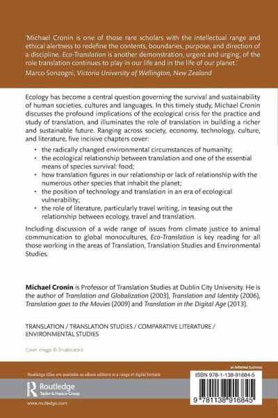 Ecology has become a central question governing the survival and sustainability of human societies, cultures and languages. In this timely study, Michael Cronin investigates how the perspective of the Anthropocene, or the effect of humans on the global environment, has profound implications for the way translation is considered in the past, present and future. Starting with a deep history of translation and ranging from food ecology to inter-species translation and green translation technology, this thought-provoking book offers a challenging and ultimately hopeful perspective on how translation can play a vital role in the future survival of the planet.