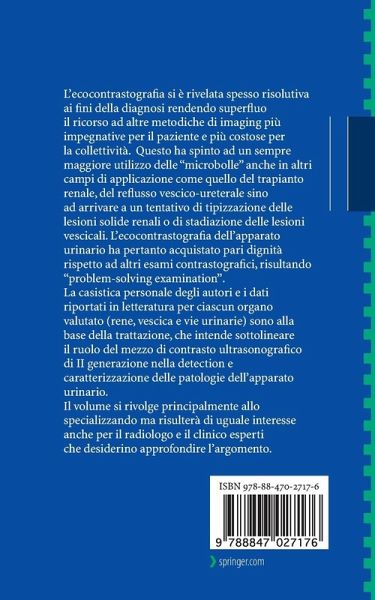 L'obiettivo del presente contributo è quello di identificare e definire il ruolo dell'ecocontrastografia nella patologia renale. Svariate sono le pubblicazioni in merito riguardanti il fegato mentre l'attenzione per le applicazioni nella patologia urinaria sta aumentando in modo cospicuo negli ultimi anni. La metodica è da subito apparsa affascinante in quanto spesso risolutiva ai fini della diagnosi rendendo superfluo il ricorso ad altre metodiche d'imaging sicuramente più impegnative per il paziente e più costose per la collettività. Infatti considerando l'affidabilità diagnostica della metodica nella valutazione dei traumi, della patologia flogistica, nella tipizzazione delle lesioni cistiche si comprende l'enorme impatto nella pratica clinica della metodica. Ciò ha spinto i cultori della materia ad un sempre maggiore utilizzo delle "microbolle" anche in altri campi di applicazione come quella del trapianto renale, del reflusso vescico-ureterale sino ad arrivare ad un tentativo di tipizzazione delle lesioni solide renali o di stadiare le lesioni vescicali. Il messaggio innovativo è che anche l'ecografia ha il suo mezzo di contrasto endovena assumendo spesso pari dignità di altri esami contrastografici, come la TC e/o la RM, divenendo cosi problem-solving examination. L'esperienza maturata dagli autori in svariati anni si caratterizza per un percorso graduale, lento ma costante, verso sempre nuove applicazioni: prima quelle epatiche, poi quelle nell'ambito della patologia traumatica addominale, per raggiungere quelle dell'apparato urinario, gastro-enterico e genitale. Il volume è rivolto sia ai Radiologi (specialisti/specializzandi) che ai clinici, proprio per l'ampia diffusione territoriale ed interspecialistica dell'ecografia stessa.
