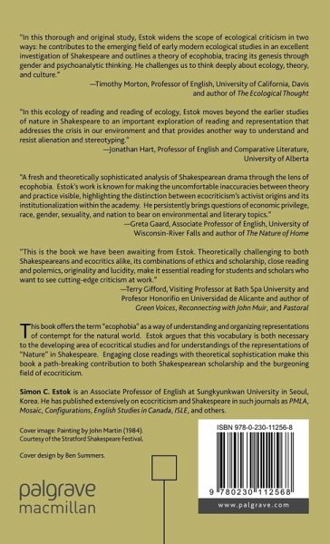 This book offers the term 'ecophobia' as a way of understanding and organizing representations of contempt for the natural world. Estok argues that this vocabulary is both necessary to the developing area of ecocritical studies and for our understandings of the representations of 'Nature' in Shakespeare.