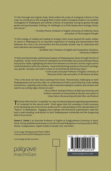 "'Ecophobia' has already begun to gain currency, making Estok the first early modernist to have a perceptible impact on ecocriticism. This alone would make Ecocriticism and Shakespeare a milestone work, setting aside its other considerable merits. It balances the claims of historicism and presentism, activism and theoretical integrity more deftly than previous studies. It unearths fresh or unsung categories in Shakespearean criticism such as environmental fear, disgust, and sleep. It dares those who teach Shakespeare to practice an activist pedagogy that engages students in environmental politics." - Early Modern Literary Studies