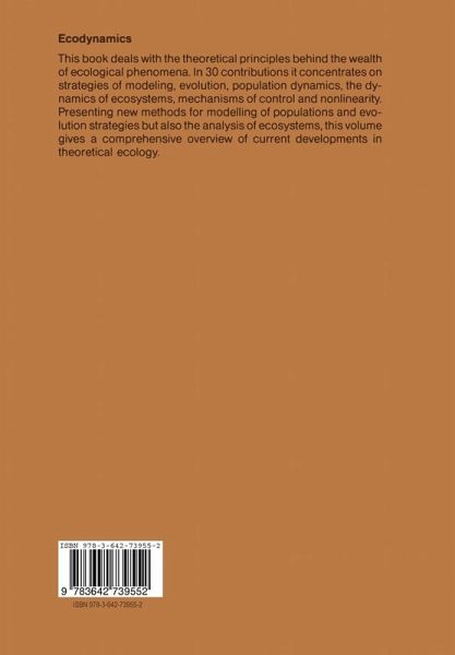 I Evolution.- Evolution: Why the Whole is Greater Than the Sum of the Parts.- The Evolution of Spatially Inhomogeneous Populations.- Intraspecific Competition and Evolution.- Fundamental Components in Ecology and Evolution: Hierarchy, Concepts and Descriptions.- Simulated Evolution of Primitive Organisms.- Dynamics of Developmentally Constrained Populations.- Differential Evolution of Pesticide Resistance in Predators and Prey.- Collective Intelligence in Evolving Systems.- II Marine and Lake Ecodynamics.- Biological-Physical Interactions in the Sea: Marine Ecodynamics.- Understanding the Baltic Sea: Systems Ecology in Theory and Practice.- Ultimate Causes of Vertical Migration in Zooplankton: An Evaluation by Evolutionary Game Theory.- Trophy-Balanced Turnover Velocities in a Two-Species System of Competing Daphnids: A Test of the "Energy Residence Time" Concept.- Ecodynamic Changes in Suburban Lakes in Berlin (FRG) During the Restoration Process After Phosphate Removal.- A Comparison of Fish Size-Composition in the North Sea and on Georges Bank.- Generic Models of Continental Shelf Ecosystems.- III Ecosystems Analysis.- On Quantifying the Effects of Formal and Final Causes in Ecosystem Development.- Avoidance of Ecological Risk in Optimal Exploitation of Biological Resources.- Deterministic Modelling of the Combined Action of Light and Heat Stress on Microbial Growth.- Different Responses in Ecosystems to Environmental Stress.- An Example of Modelling in Ecotoxicology.- Spatial Simulation of Population Dynamics in the Evaluation of Foraging Theory in Complex Ecological Systems.- Models for the Management of Renewable Resources Embedded in Complex Marine Systems.- IV Forest Ecosystems.- Ecodynamics as a Function of Ecosystem Structure: Forest Dieback as anExample.- Ecosystem Theory Required to Identify Future Forest Responses to Changing CO2 and Climate.- V Modelling Approaches.- The Role of Theoretical Research in the Design of Programmes for the Control of Infectious Disease Agents.- Microinteractive Predator-Prey Simulations.- Biological Attractors, Transients, and Evolution.- Unstable Determinism in the Information Production Profile of an Epidemiological Time Series.- Random Elements in a Population Model Based on Individual Development.- Measures of Spatio-Temporal Irregularity.- Index of Contributors.