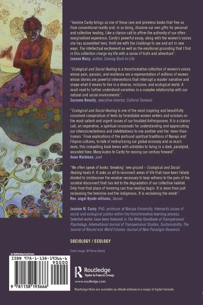 Dedication Acknowledgements List of Contributors Introduction Jeanine M. Canty (Editor) Section I Worldview Dekaaz One: Vow Rachel Bagby Chapter I This is What Happens When Mei Mei Evans Chapter II Sustainability and the Soul Susan Griffin Chapter III Seeing Clearly through Cracked Lenses Jeanine M. Canty Chapter IV Intersection of an Indigenous World View and Applied Neurophysiology Anita L. Sanchez Section II Place Dekaaz Two Rachel Bagby Chapter V Finding Hope at the Margins: A Journey of Environmental Justice Ana I. Baptista Chapter VI Intricate Yet Nourishing: Multiracial Women, Ecology, and Social Well-being Nina S. Roberts Chapter VII Linking Ancestral Seeds and Waters to the Indigenous Places We Inhabit Melissa K. Nelson and Nícola Wagenberg Chapter VIII Beauty Out of the Shadows: The Indigenous Turn in a Filipina Narrative Leny Mendoza Strobel Section III Healing Dekaaz Three Rachel Bagby Chapter IX Navajo Youth: Cultivating Healthy Relationships through Traditional Reciprocity Molly Bigknife Antonio Chapter X A Yinyang, EcocriticalFabulation on Doctor Who Ju-Pong Lin Chapter XI Piercing the Shell of Privilege: How My Commitments to Environmental and Gender Justice Moved from My Head to My Heart Nina Simons Chapter XII Our Differentiated Unity: An Evolutionary Perspective on Healing the Wounds of Slavery and the Planet Belvie Rooks Index