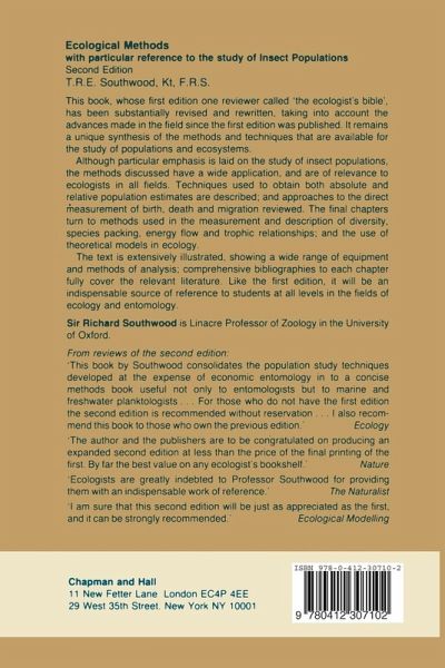 1 Introduction to the study of animal populations.- 1.1 Population Estimates.- 1.2 Errors and Confidence.- 2 The sampling programme and the measurement and description of dispersion.- 2.1 Preliminary Sampling.- 2.2 The Sampling Programme.- 2.3 Dispersion.- 2.4 Sequential Sampling.- 2.5 Presence or Absence Sampling.- 2.6 Sampling a Fauna.- 2.7 Biological and Other Qualitative Aspects of Sampling.- 3 Absolute population estimates using marking techniques.- 3.1 Methods of Marking Animals.- 3.2 Capture-Recapture Methods of Estimating Population Parameters.- 4 Absolute population estimates by sampling a unit of habitat -air, plants, plant products and vertebrate hosts.- 4.1 Sampling from the AIR.- 4.2 Sampling From Plants.- 4.3 Sampling from Vertebrate Hosts.- 5 Absolute population estimates by sampling a unit of habitat-soil and litter.- 5.1 Sampling.- 5.2 Mechanical Methods of Extraction.- 5.3 Behavioural or Dynamic Methods.- 5.4 Summary of the Applicability of the Methods.- 6 Absolute population estimates by sampling a unit of habitat - freshwater habitats.- 6.1 Open Water.- 6.2 Vegetation.- 6.3 Bottom Fauna.- 7 Relative methods of population measurement and the derivation of absolute estimates.- 7.1 Factors Affecting the size of Relative Estimates.- 7.2 The uses of Relative Methods.- 7.3 Relative Methods - Catch Per Unit Effort.- 7.4 Relative Methods - Trapping.- 8 Estimates based on products and effects of insects.- 8.1 Products.- 8.2 Effects.- 9 Observational and experimental methods for the estimation of natality, mortality and dispersal.- 9.1 Natality.- 9.2 Mortality.- 9.5 Dispersal.- 10 The Construction, description and analysis of age-specific life-tables.- 10.1 Types of Life-Table and the Budget.- 10.2 The Construction of a Budget.- 10.3 The Description ofBudgets and Life-Tables.- 10.4 The Analysis of Life-Table Data.- 11 Age-grouping of insects, time-specific life-tables and predictive population models.- 11.1 Age-Grouping of Insects.- 11.2 Time-Specific Life Table and Survival Rates.- 11.3 Predictive Population Models.- 12 Systems analysis and modelling in ecology.- 12.1 Types of Systems Model.- 12.2 Analysis and Simulation in Models.- 12.3 Deterministic and Stochastic Models.- 12.4 Difference and Differential Models.- 13 Diversity, species packing and habitat description.- 13.1 Diversity.- 13.2 Species Packing.- 13.3 Habitats.- 14 The estimation of productivity and the construction of energy budgets.- 14.1 Estimation of Standing Crop.- 14.2 Estimation of Energy Flow.- 14.3 The Energy Budget, Efficiencies and Transfer Coefficients.- 14.4 Assessment of Energy and Time Cost Strategies.- Author Index.- General Index.