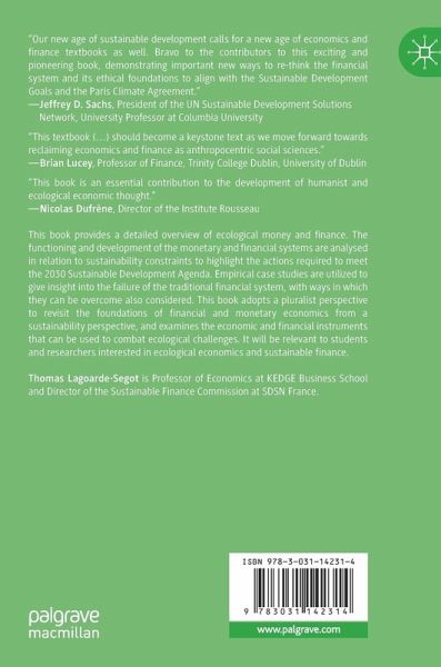 This book provides a detailed overview of ecological money and finance. The functioning and development of the monetary and financial systems are analysed in relation to sustainability constraints to highlight the actions required to meet the 2030 Sustainable Development Agenda. Empirical case studies are utilized to give insight into the failure of the traditional financial system, with ways in which they can be overcome also considered. This book adopts a pluralist perspective to revisit the foundations of financial and monetary economics from a sustainability perspective, and examines the economic and financial instruments that can be used to combat ecological challenges. It will be relevant to students and researchers interested in ecological economics and sustainable finance.