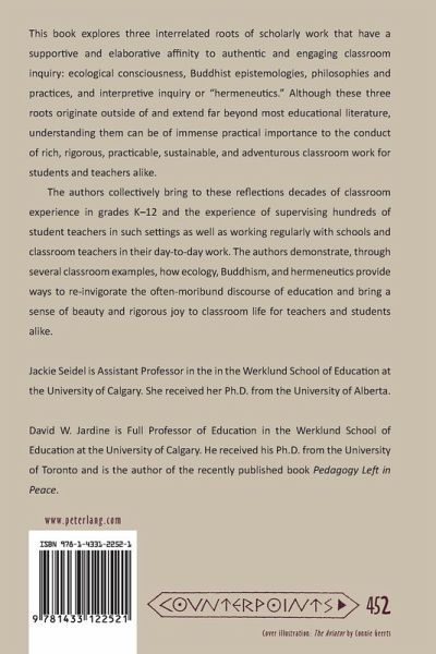 This book explores three interrelated roots of scholarly work that have a supportive and elaborative affinity to authentic and engaging classroom inquiry: ecological consciousness, Buddhist epistemologies, philosophies and practices, and interpretive inquiry or «hermeneutics». Although these three roots originate outside of and extend far beyond most educational literature, understanding them can be of immense practical importance to the conduct of rich, rigorous, practicable, sustainable, and adventurous classroom work for students and teachers alike.