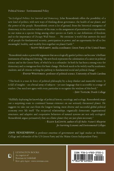 Politics stoutly resists efforts to meet dire threats to human survival, such as climate change, industrial poisons, and "natural" disasters. This book seizes on new discoveries of nature’s interconnective ways to demand politics and government without violence and electoral action from the ground up by an independent political party.