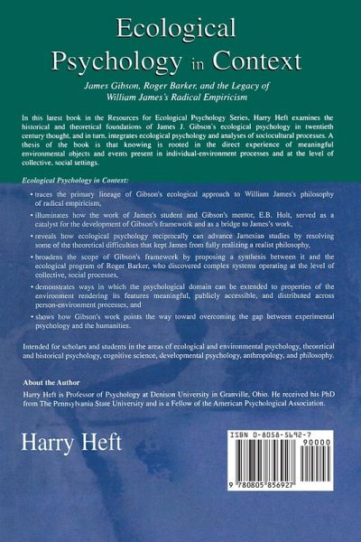 "Harry Heft's Ecological Psychology in Context is an extremely important work, a deep and detailed excursion into the history of American psychology, and the most sophisticated description of the philosophical background of Gibson's ecological psychology yet put to paper...Heft's book cannot but be of enormous service to the small but growing community of psychologists who are interested in applying Gibson's ideas..."