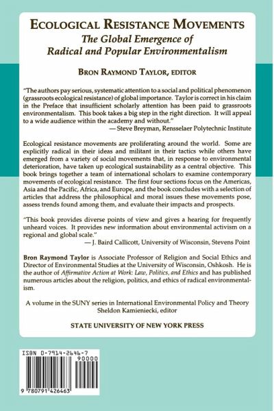 Ecological resistance movements are proliferating around the world. Some are explicitly radical in their ideas and militant in their tactics while others have emerged from a variety of social movements that, in response to environmental deterioration, have taken up ecological sustainability as a central objective. This book brings together a team of international scholars to examine contemporary movements of ecological resistance. The first four sections focus on the Americas, Asia and the Pacific, Africa, and Europe, and the book concludes with a selection of articles that address the philosophical and moral issues these movements pose, assess trends found among them, and evaluate their impacts and prospects. [Among the many contributors to the volume are Daniel Deudney, Robert Edwards, Heidi Hadsell, Sheldon Kamieniecki, Lois Lorentzen, David Rothenberg, Wolfgang Rudig, Jerry Stark, Paul Wapner, and Ben Wisner.]