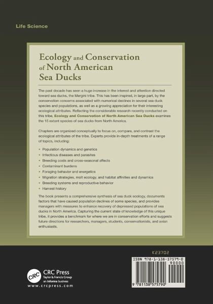 Status and Trends of North American Sea Ducks: Reinforcing the Need for Better Monitoring. Phylogenetics Phylogeography and Population Genetics of North American Sea Ducks (Tribe: Mergini). Population Dynamics of Sea Ducks: Using Models to Understand the Causes Consequences Evolution and Management of Variation in Life History Characteristics. Infectious Diseases Parasites and Biological Toxins in Sea Ducks. Dealing with Deficits: Breeding Costs Nutrient Reserves and Cross-Seasonal Effects in Sea Ducks. Metals and Trace Elements Petroleum Organic Pollutants and Radiation in Sea Ducks. Foraging Behavior Ecology and Energetics of Sea Ducks. Variation in Migration Strategies of North American Sea Ducks. Remigial Molt of Sea Ducks. Site Fidelity Breeding Habitats and the Reproductive Strategies of Sea Ducks. Breeding Systems Spacing Behavior and Reproductive Behavior of Sea Ducks. Harvest of Sea Ducks in North America: A Contemporary Summary. Habitats of North American Sea Ducks. Conservation of North American Sea Ducks. Conclusions Synthesis and Future Directions: Understanding Sources of Population Change. Appendix A: North American Sea Ducks. Index.