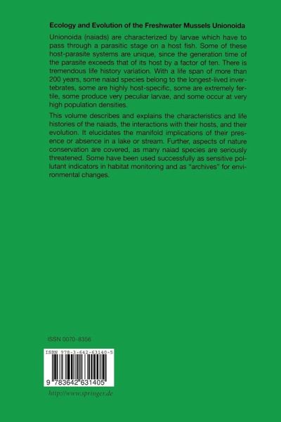 From the reviews "... Hier wird eine aktuelle Synopse des Wissens über die Biologie der großen Süßwassermuscheln = Najaden verfügbar gemacht, wie sie in dieser Vollständigkeit bislang nicht bekannt war. Dafür ist den Autoren zu danken. Der Band sollte in keiner wissenschaftlichen Bibliothek fehlen, ebenso nicht in der von Najadenforschern und Malakozoologen sowie der Nautrschutzverwaltung." (Mainzer Naturwissenschaftliches Archiv Vol. 39, 2001)