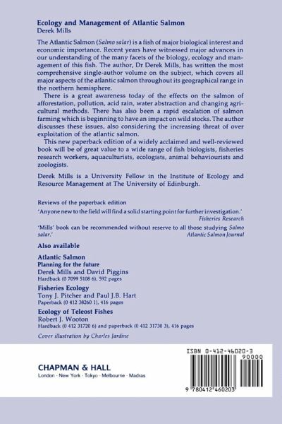 The Alantic salmon (Salmo salar) is a fish of major biological interest and economic importance. Recent years have witnessed major advances in the understanding of the many facets of the biology, ecology and management of this fish. The author, Dr Derek Mills, covers all major aspects of the atlantic salmon throughout its geographical range in the northern hemisphere.