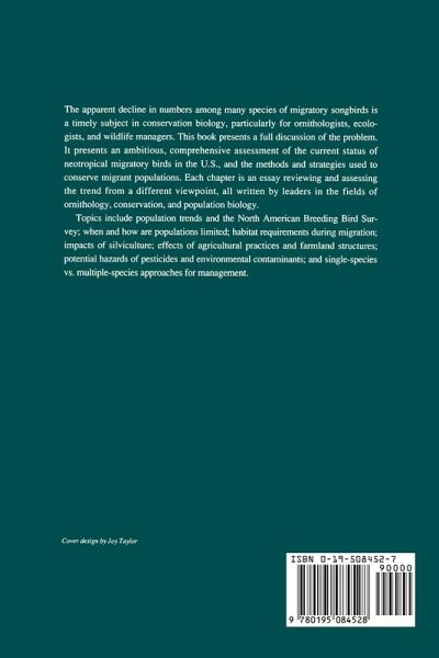 The apparent decline in numbers among many species of migratory songbirds is a timely subject in conservation biology, particularly for ornithologists, ecologists, and wildlife managers. This book is an attempt to discuss the problem in full scope.