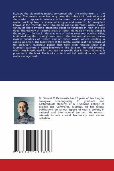 Ecology, the pioneering subject concerned with the environment of the planet. The coastal zone has long been the subject of fascination and study which represents interface in between the atmosphere, land and water has long been a source of intrigue and research. An ecosystem known as the Intertidal zone is found on Coastal shorelines, where a wide variety of shore-dwelling organisms adapt to variations in high and low tides. The ecology of selected areas of south Mumbai's Intertidal zones is the subject of the book. Mumbai, one of India's most cosmopolitan cities, is situated on the country's west coast. Mumbai coastal waters receive massive quantities of treated and untreated waste waters resulting in coastal pollution. The biodiversity of the coastal waters is at risk because of this pollution. Numerous papers that have been released show that Mumbai's seashore is losing biodiversity. The data on intertidal diversity, which was investigated for two years at specific sites in south Mumbai, is presented in the book. The book's contents will help with Mumbai's coastal water management.