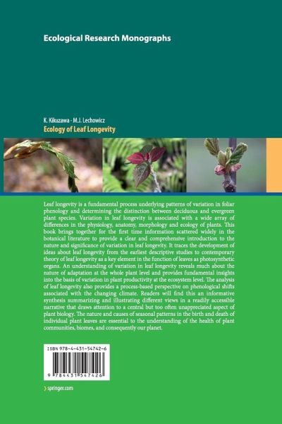 Leaf longevity is a fundamental process underlying patterns of variation in foliar phenology and determining the distinction between deciduous and evergreen plant species. Variation in leaf longevity is associated with a wide array of differences in the physiology, anatomy, morphology and ecology of plants. This book brings together for the first time information scattered widely in the botanical literature to provide a clear and comprehensive introduction to the nature and significance of variation in leaf longevity. It traces the development of ideas about leaf longevity from the earliest descriptive studies to contemporary theory of leaf longevity as a key element in the function of leaves as photosynthetic organs. An understanding of variation in leaf longevity reveals much about the nature of adaptation at the whole plant level and provides fundamental insights into the basis of variation in plant productivity at the ecosystem level. The analysis of leaf longevity also provides a process-based perspective on phenological shifts associated with the changing climate. Readers will find this an informative synthesis summarizing and illustrating different views in a readily accessible narrative that draws attention to a central but too often unappreciated aspect of plant biology. The nature and causes of seasonal patterns in the birth and death of individual plant leaves are essential to the understanding of the health of plant communities, biomes, and consequently our planet.