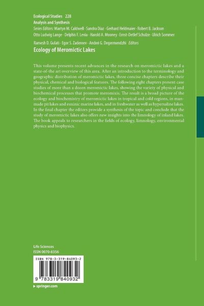 This volume presents recent advances in the research on meromictic lakes and a state-of-the art overview of this area. After an introduction to the terminology and geographic distribution of meromictic lakes, three concise chapters describe their physical, chemical and biological features. The following eight chapters present case studies of more than a dozen meromictic lakes, showing the variety of physical and biochemical processes that promote meromixis. The result is a broad picture of the ecology and biochemistry of meromictic lakes in tropical and cold regions, in man-made pit lakes and euxinic marine lakes, and in freshwater as well as hypersaline lakes. In the final chapter the editors provide a synthesis of the topic and conclude that the study of meromictic lakes also offers new insights into the limnology of inland lakes. The book appeals to researchers in the fields of ecology, limnology, environmental physics and biophysics.